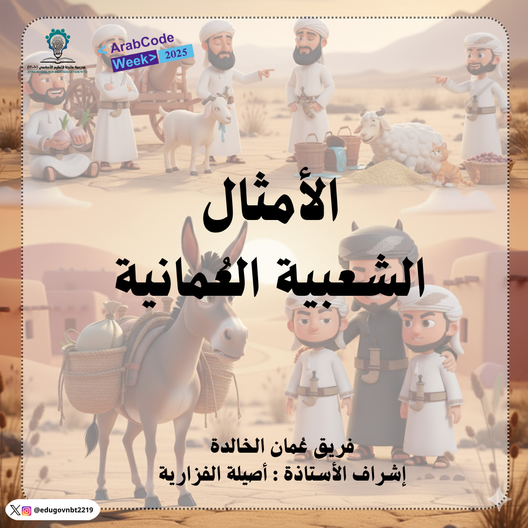 في إطار تعزيز الهوية الثقافية واللغوية لدى الطالبات، تم تنفيذ نشاط بعنوان "الأمثال الشعبية العُمانية"، يهدف إلى استكشاف الموروث الشعبي الغني بالأمثال التي تعكس حكمة المجتمع العُماني وتجربته عبر الأجيال. ونفذ خلال النشاط، قامت الطالبات بجمع مجموعة من الأمثال المتداولة في مختلف مناطق السلطنة، ثم عرضنها بأساليب متنوعة مثل: المسابقات والصور التي تم توليدها بالذكاء الاصطناعي.