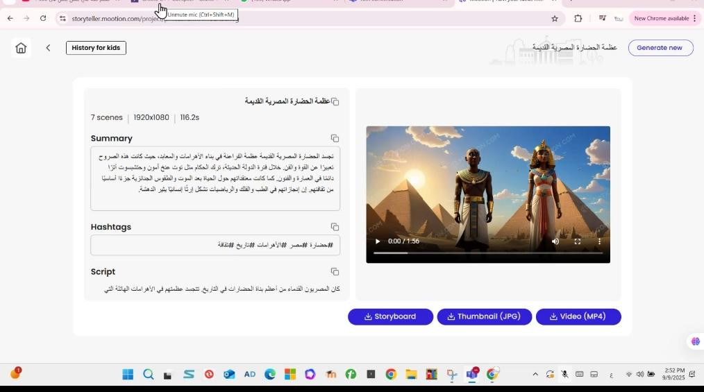 محاضره تدريبيه عن الذكاء الاصطناعى لاستكشاف التراث المصري عبر الفيديو الإبداعي باستخدام Mootion